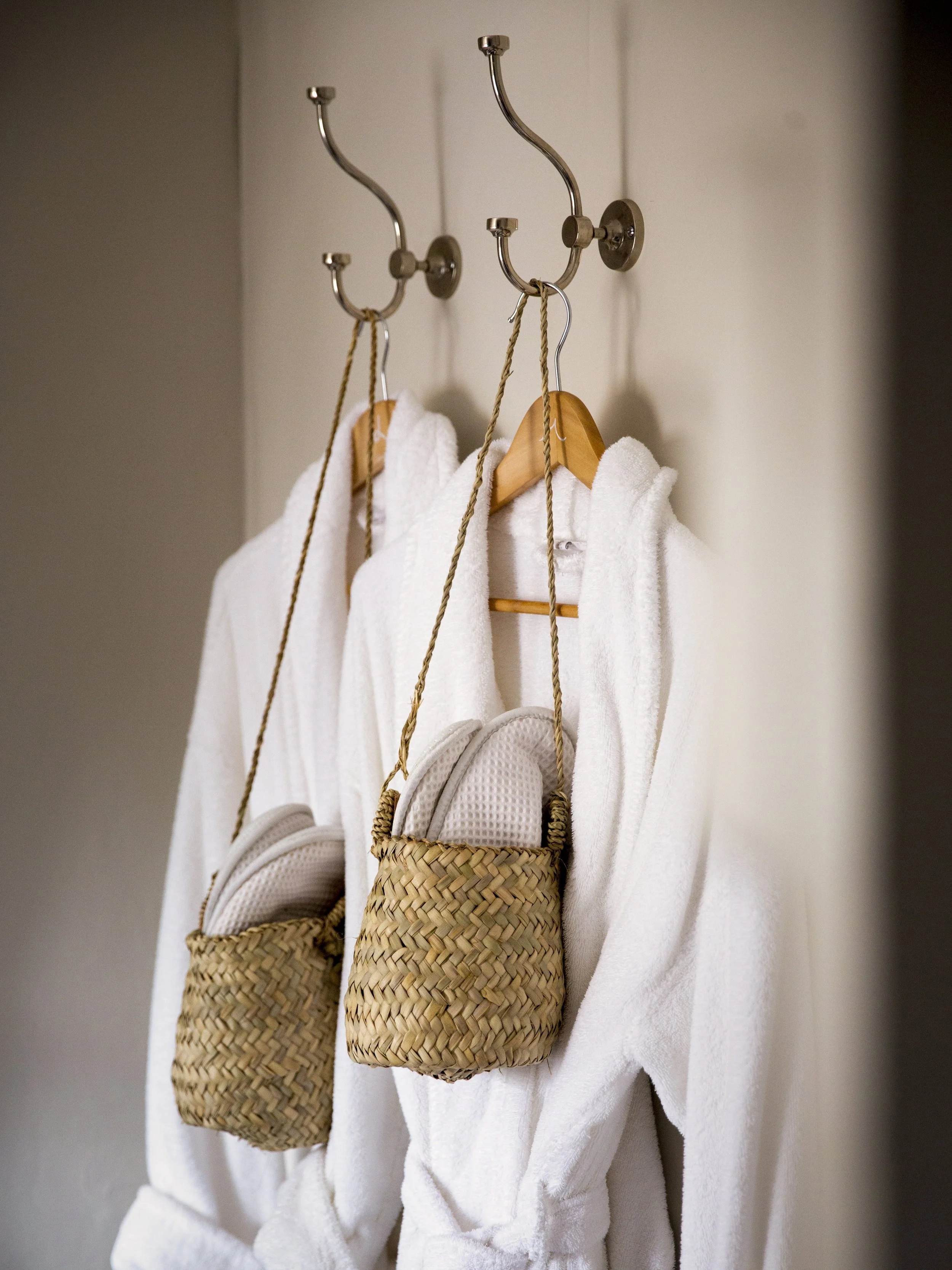 Soft, fluffy towels, dressing gowns, and slippers